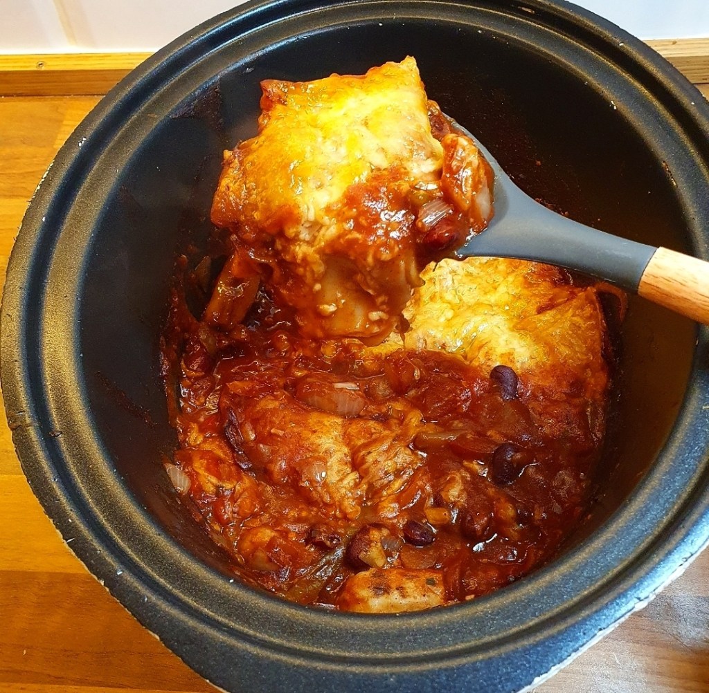 Below is a different version of the above recipe this is similar to a pasta bake but done in the slow cooker. The recipe is exactly the same as above BUT i have broken up lasagne sheets and added them to the slow cooker and added a layer of cheese and cooked for a further 15 minutes – verdict??? GORGEOUS