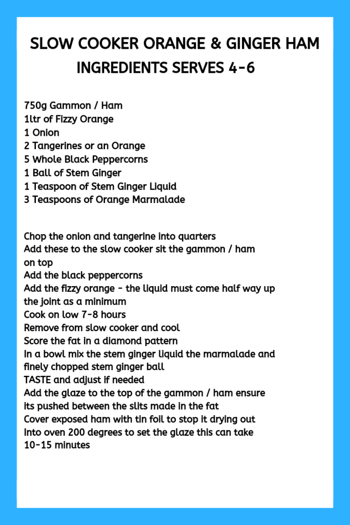 I always cook my gammon in the slow cooker as it comes out so tender, this joint i cooked in diet orange with a couple of black peppercorns as i didn’t want to over flavour the meat as im using the leftovers in other meals therefore i needed to be careful with the flavours. The end result was a subtle flavour perfectly balance and wasn’t overpowering.