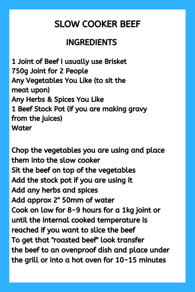 You can find all information herehttps://julesthelazycook.co.uk/2017/09/13/slow-cooker-chicken/ but I’ve also done a really short quick video to help