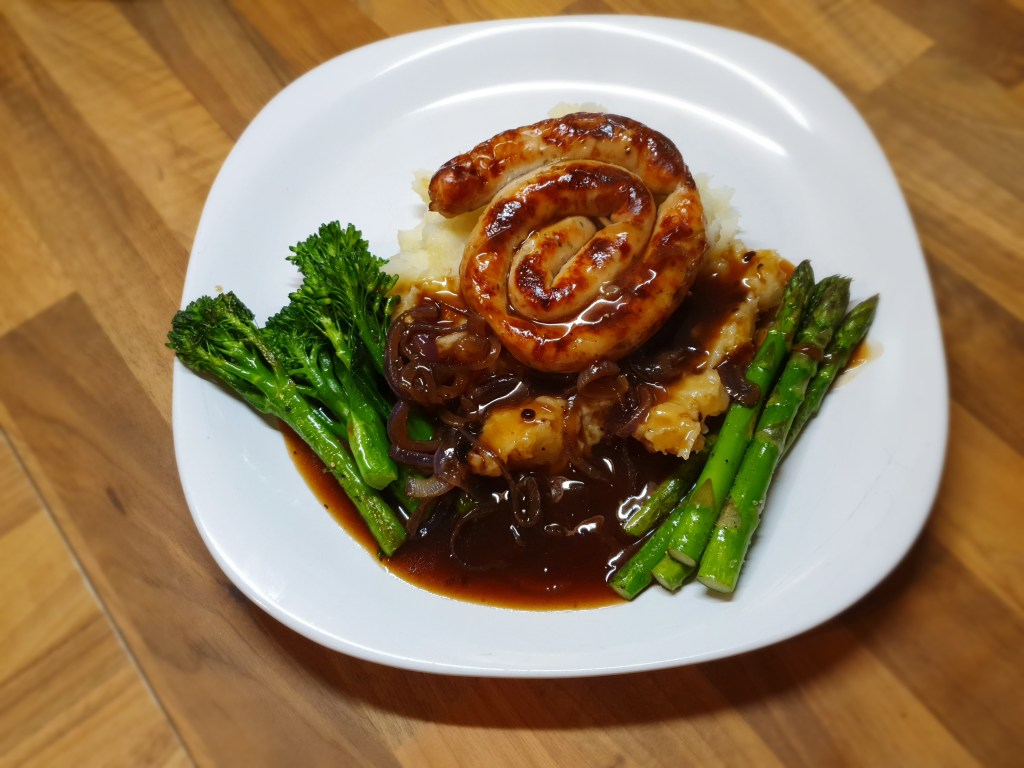This is just a really fab way of adding a little bit of something different to a meal and it doesn’t take much effort to do it either. The sausages i used are Heck Chicken Italia you can use any you like but it works best with sausages that come in links.