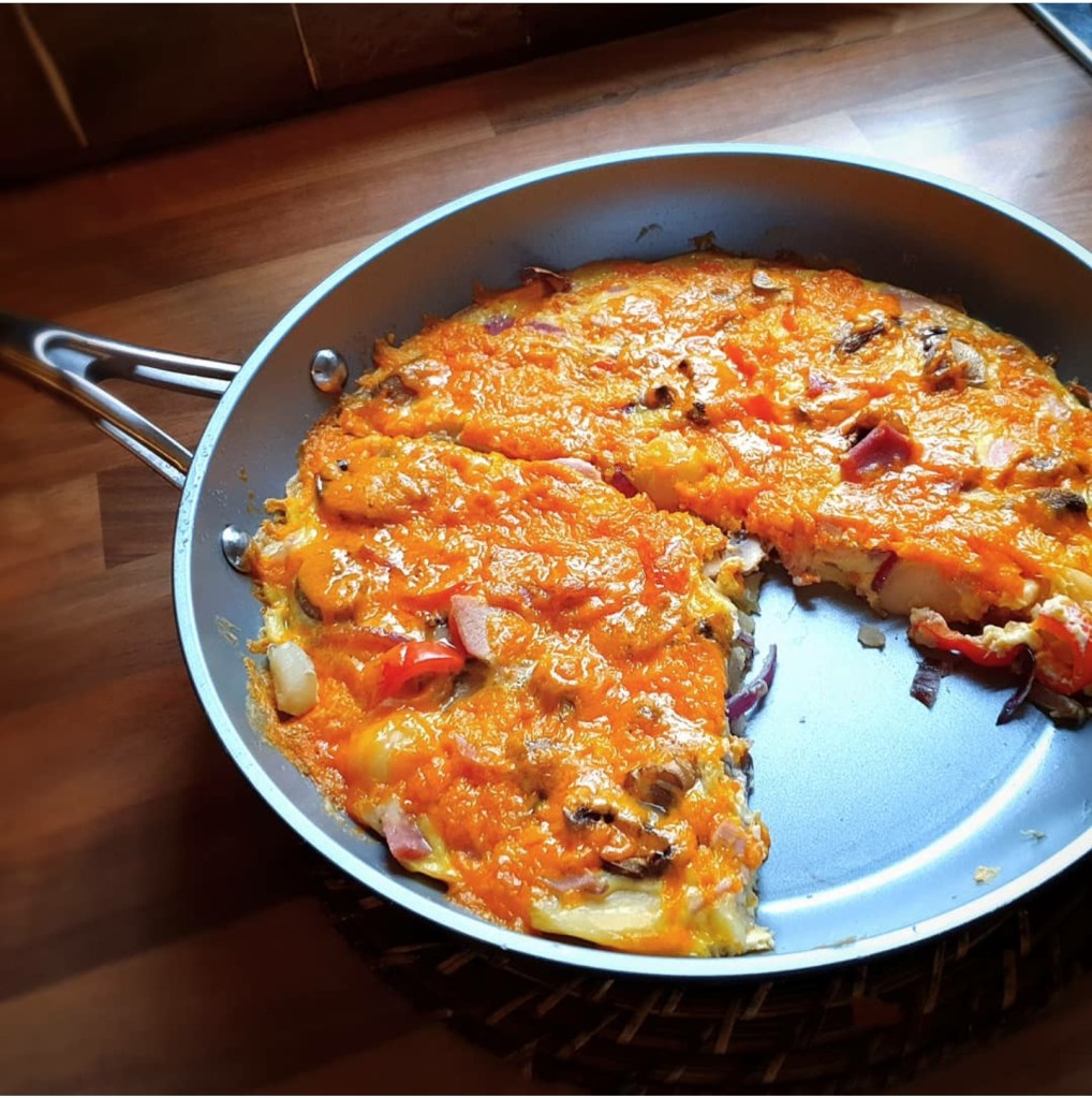 This is a perfect food waste recipe as you can literally add anything you like, all those vegetables in the fridge looking past their best – those work well in this recipe. Leftover chicken or ham from Sunday dinner again perfect for this dish is a great all round base to create a dinner using up whatever you have.